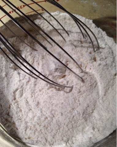 In a large mixing bowl, stir together the flour, sugar, baking powder, baking soda, and salt.