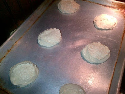 Bake for 20 minutes, until the edges/bottom just start to turn golden and the cookies spring back nicely without soft spots. Remove the cookies from the oven, let them cool on the baking sheet for a few minutes, then carefully remove them from the pan. Flip the cookies upside down onto the rounded side, place them on wire rack or foil to complete cooling. When they are completely cooled, you will be ready to frost them. Prepare you frosting before hand so everything is ready.